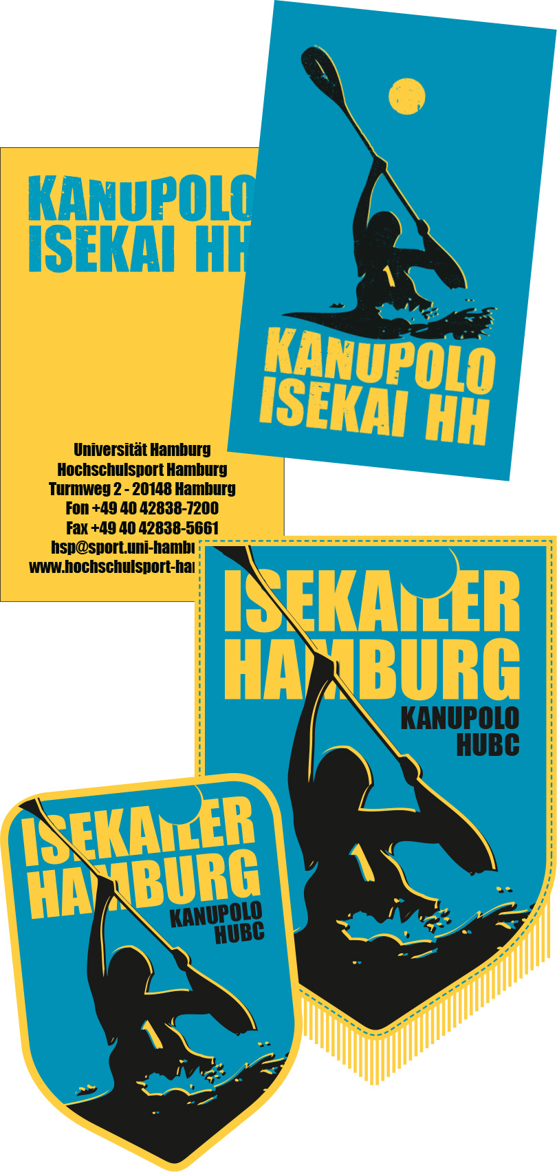 Für einen Kanupolo-Verein durfte ich ein Logo entwerfen. Es entstanden Visitenkarten, Wimpel, Aufkleber und es wurden in Handarbeit T-Shirts im Siebdruck bedruckt. Später bekam die Anfänger-Mannschaft des Vereins ihr eigenes Logo.