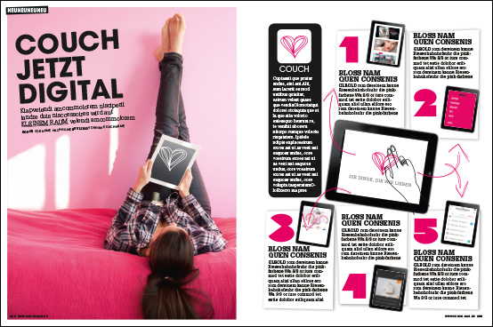 Für das Magazin COUCH habe ich immer wieder Specials betreut und Strecken gelayoutet.